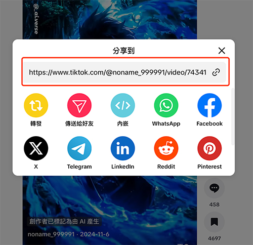Step 1:Find the TikTok video/graphics you want to download and copy the link to the video you want to download