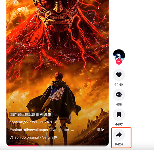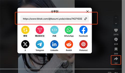 Langkah 2:Klik ikon"Kongsi"pada halaman video Tiktok. Apabila video memainkan video cerita, anda akan melihat ikon"kongsi"di sudut kanan atas skrin. Klik dan pilih pautan salin dari menu pop timbul.